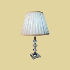 Eleve a sofisticação da sua decoração com este abajur de design intemporal. Combinando a transparência do cristal com a suavidade de uma cúpula plissada, esta peça é a definição de bom gosto para quartos, salas de estar ou halls de entrada.