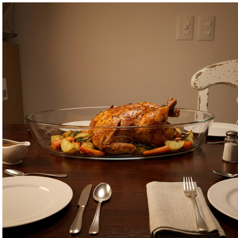 Assadeira Oval Marinex em Vidro Temperado – 40 cm de Pura Praticidade
