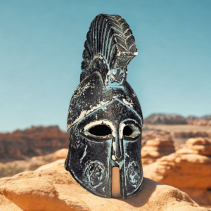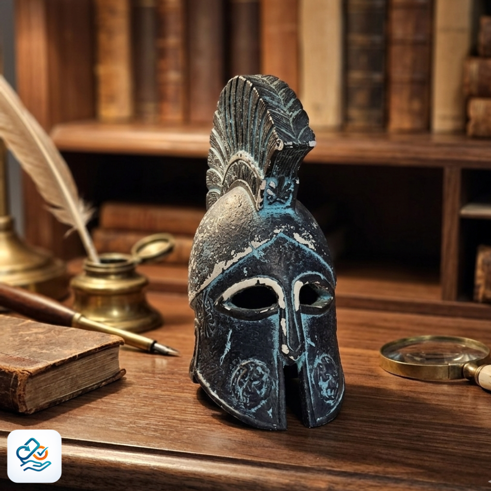 Miniatura de Capacete Espartano Antigo – Peça Decorativa Exclusiva