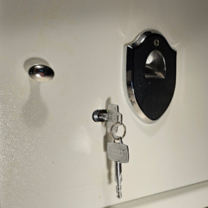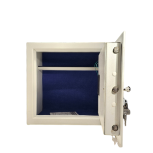 - Design Moderno: Acabamento em pintura epóxi de alta durabilidade na cor branca, permitindo que o cofre se integre de forma discreta em armários ou nichos de parede.