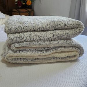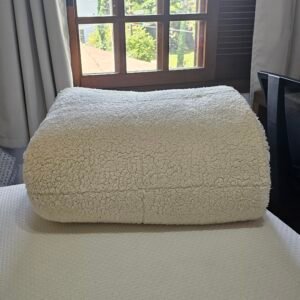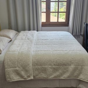 - Lado B (Liso/Sherpa): Um lado em tom off-white/creme com textura que remete à lã de carneiro, proporcionando um visual clean e uma sensação de calor imediato.