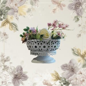 Adicione um toque de elegância clássica e aconchego ao seu ambiente com esta belíssima peça decorativa. Composta por um bowl de metal branco com design rendado e base pedestre, acompanhado por um arranjo floral sintético exuberante e delicado, este conjunto é perfeito para criar um ponto focal sofisticado em mesas de jantar, balcões ou aparadores, ao melhor estilo “shabby chic” ou rústico/chic.