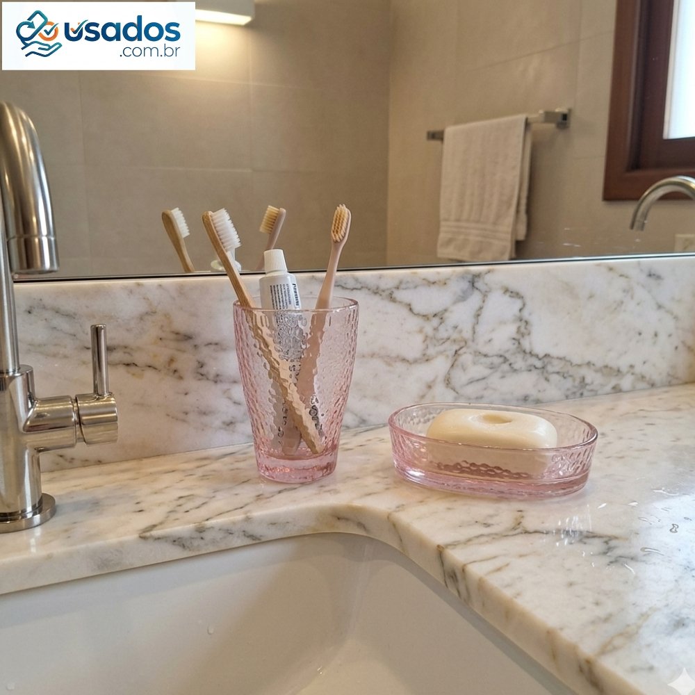 Copo Multiuso: Ideal para organizar suas escovas de dente e cremes dentais com estilo, ou até mesmo como suporte para pincéis de maquiagem. Sua borda arredondada garante segurança e um acabamento fino.