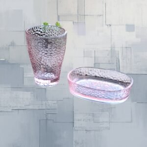 Transforme o seu ritual de autocuidado e a decoração do seu lavabo com o nosso Kit Banheiro em Vidro Rosa Quartzo. Com um design que equilibra perfeitamente o clássico e o moderno, este conjunto é a peça que faltava para trazer sofisticação e organização à sua bancada.