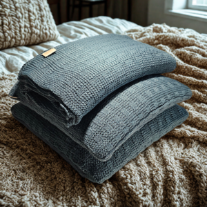 Manta Decorativa em Textura Waffle Azul Mineral – Conforto e Estilo