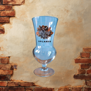 Esta peça possui uma origem única: é uma taça de vidro original do Rainforest Café em Orlando, adquirida diretamente no famoso restaurante temático. É um item perfeito para colecionadores ou para quem deseja ter uma lembrança autêntica da experiência nos parques da Flórida.